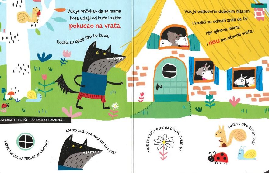 Bajka o vuku i sedam kozlića prikazana je na jednostavan način prilagođen najmlađima,