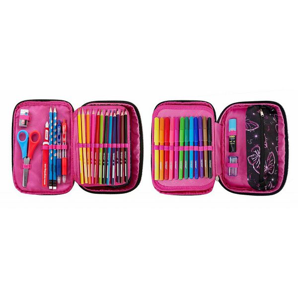 Elegantna pernica pune veličine za djevojčice iz kolekcije Dancing Queen, koja impresionira svojim jasnim rasporedom i estetskom savršenošću. Sadrži unutarnji organizator, dodatnu mini olovku i kompletan set kvalitetnog školskog pribora. Kompaktna, izdržljiva i kreirana imajući na umu potrebe prvašića.