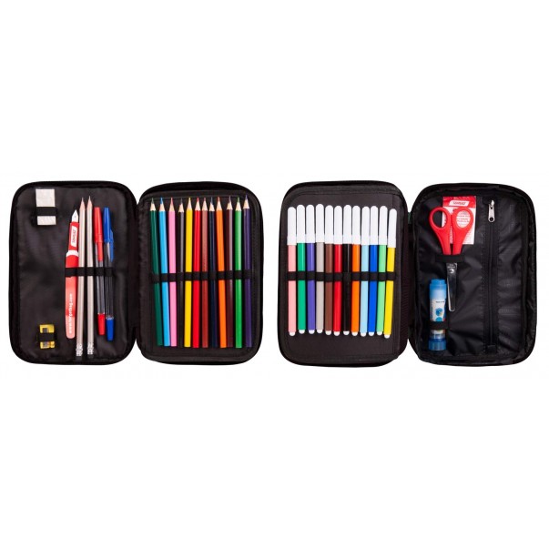 - sadrži kvalitetne TARGET olovke, bojice i flomastere te škare, ljepilo, gumicu i šiljilo