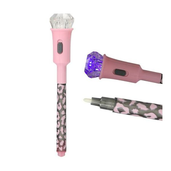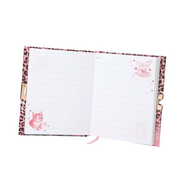 TOPModel set za tajne misli i tajne: Dnevnik u šarenom leo izgledu s cool motivom modela ima bravu u obliku srca s dva ključa ,stranice sa crtama.. Posebna olovka piše nevidljivom tintom koja postaje vidljiva tek kada je osvijetljena UV svjetlom na dijamantnom vrhu. Baterije u olovci su zamjenjive.