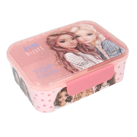 Ova TOPModel kutija za ručak ima slatki dizajn s točkicama i kopču. Unutra se nalazi veliki pretinac i fleksibilni pretinac s uklonjivom pregradom. Osnovna boja je roze. Kutija nije prikladna za mikrovalnu pećnicu i treba je prati ručno zbog uzorka. Materijal: PP plastika; bez BPA i plastifikatora.