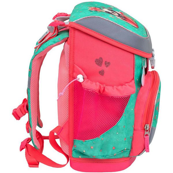 Ima pametno podijeljene odjeljke koji djeci pomažu organizirati školski pribor. Postoje dva velika unutarnja odjeljka. Sve veličine bilježnica i knjiga savršeno pristaju. Boca vode (do 0,7 L) i kišobran mogu se lako spakirati u bočne džepove.